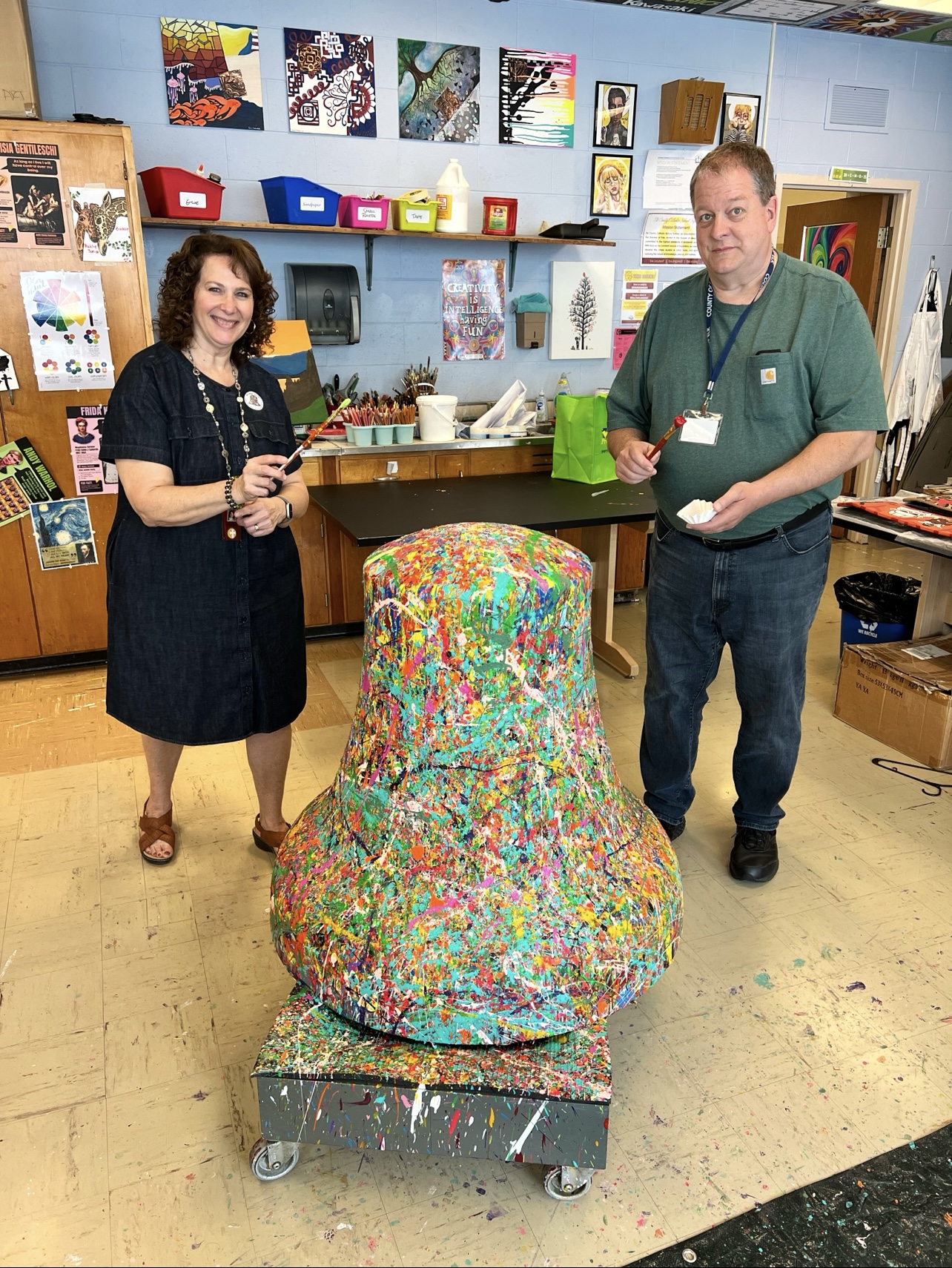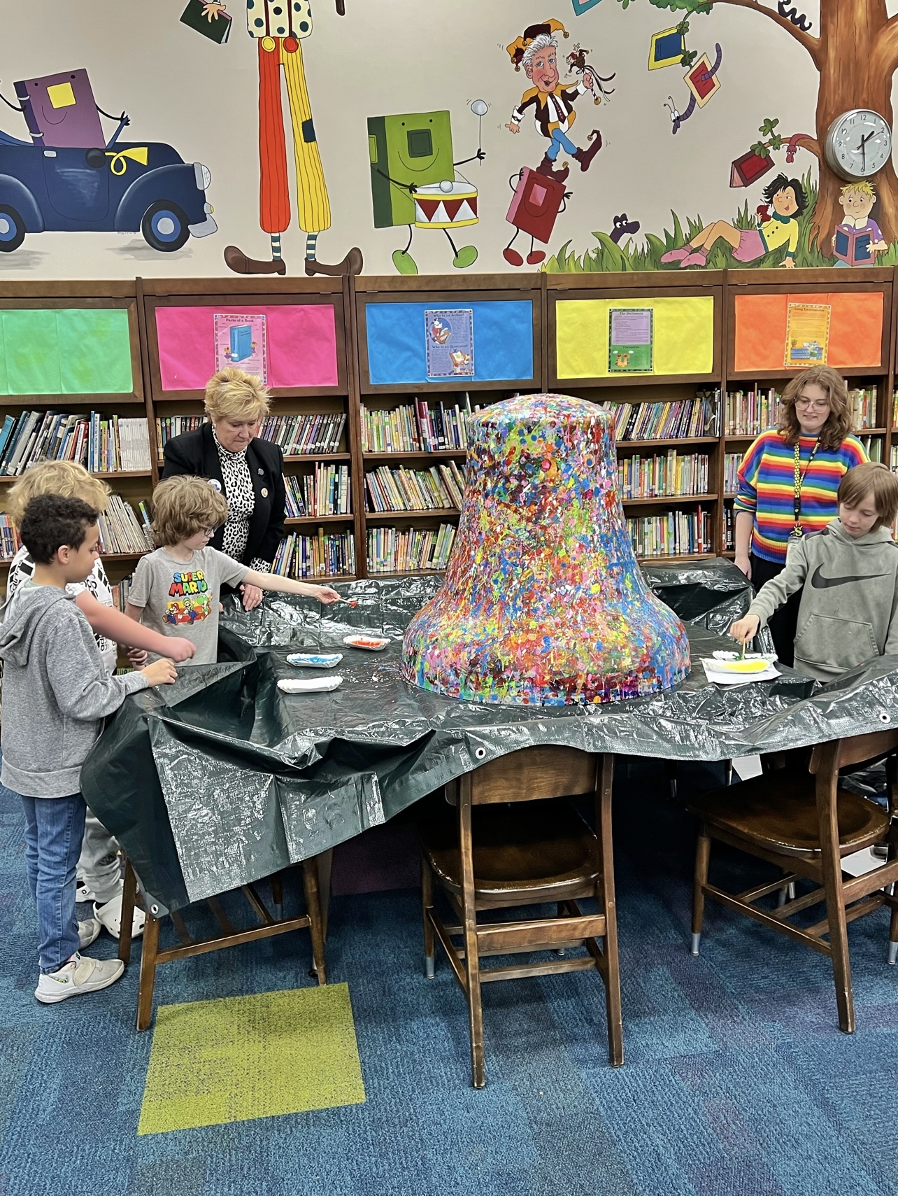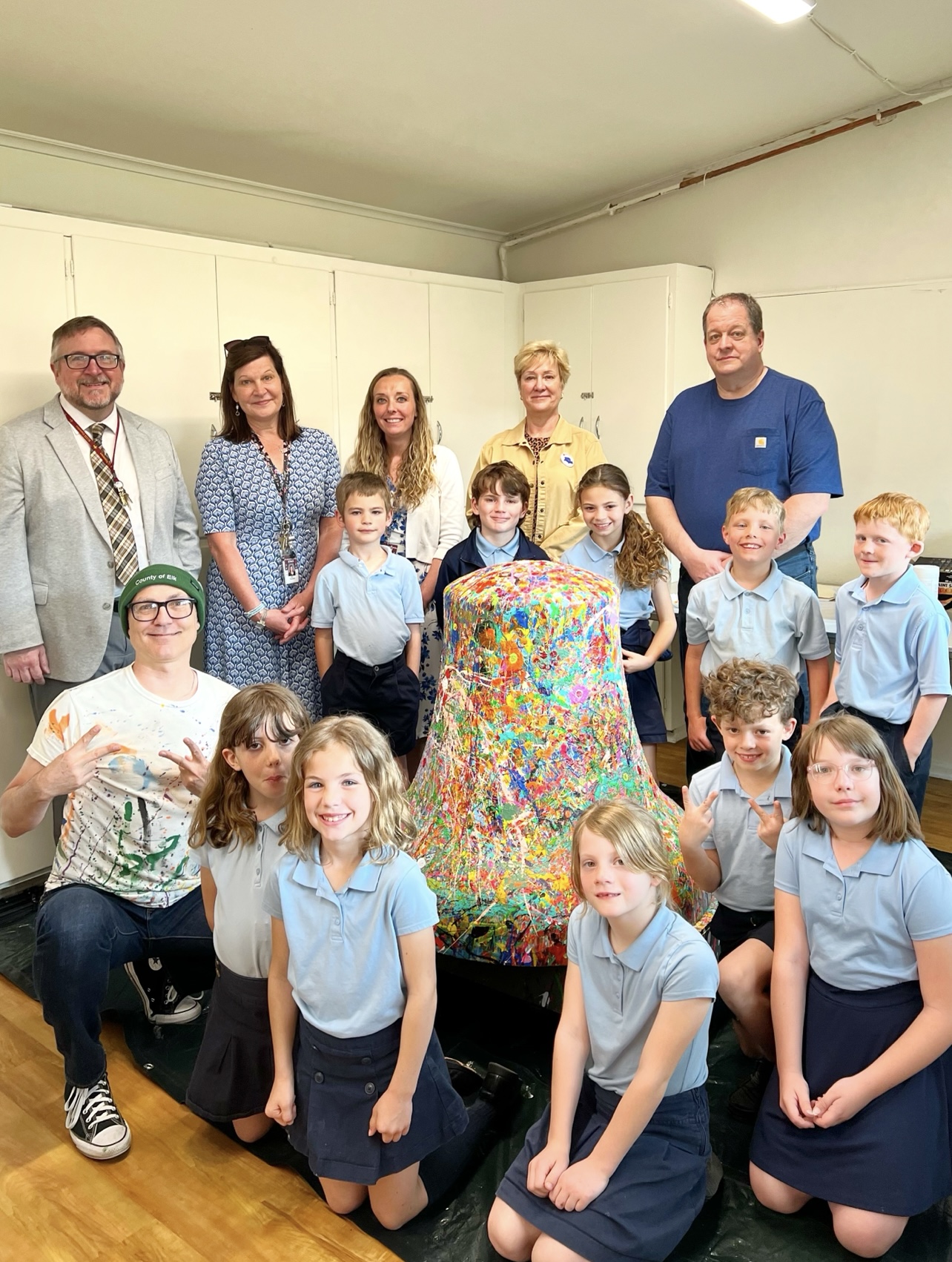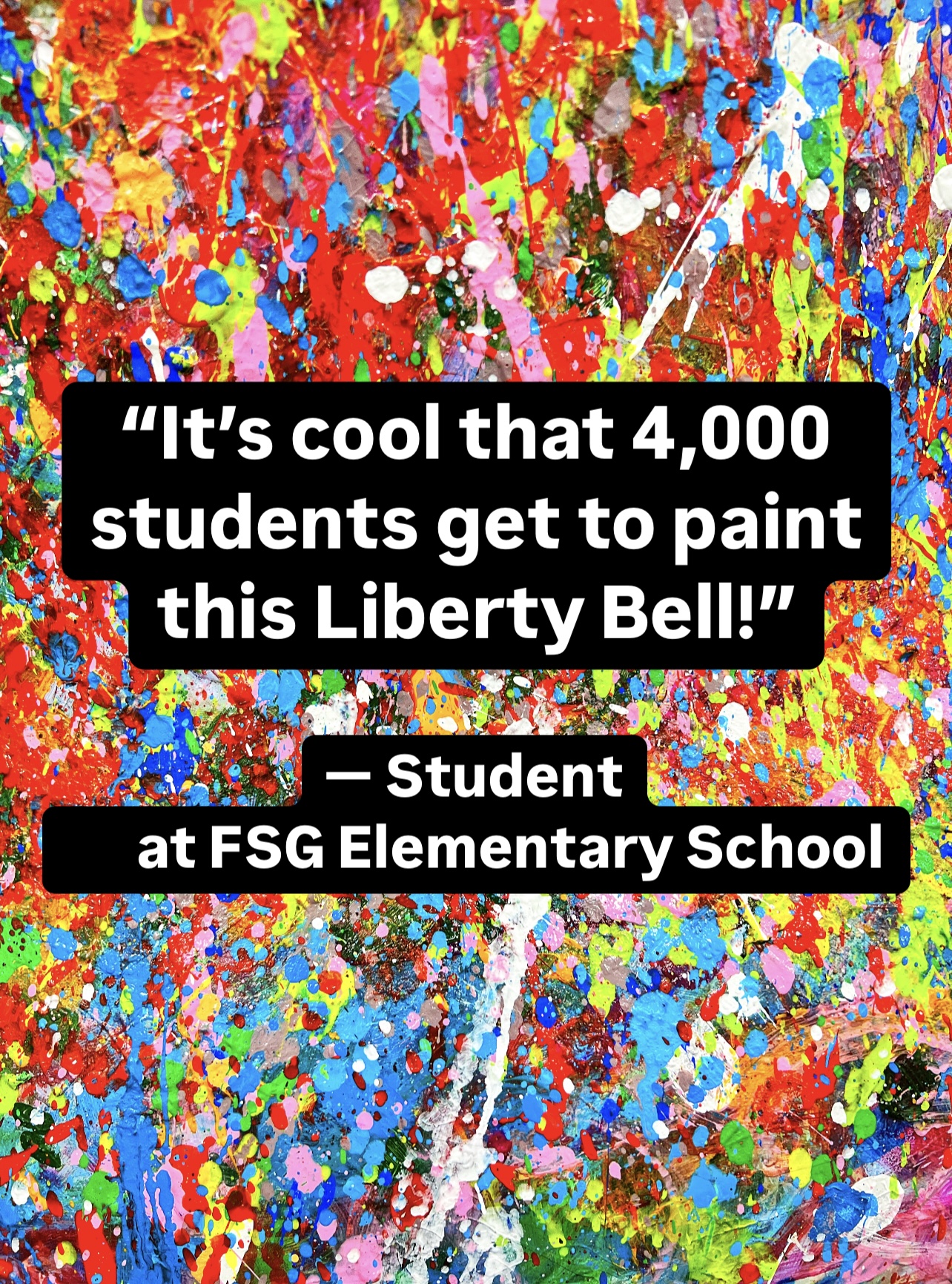 Spearheaded and sponsored by the Elk County Commissioners and conceptualized by artist John Schlimm as a Participatory/Interactive Art work titled The United Colors of Liberty—Elk County, Pennsylvania, this project gave the nearly 4,000 K-12 students across Elk County the chance to add their splash of color to the three-foot tall fiberglass replica of the iconic Liberty Bell during the Bell’s 4-month—February to May 2025—tour to all 14 Elk County schools and the Elk County Homeschool community. During Summer 2025, the Bell will be on exhibit at Elk County’s 4 public libraries and appear in all area parades.