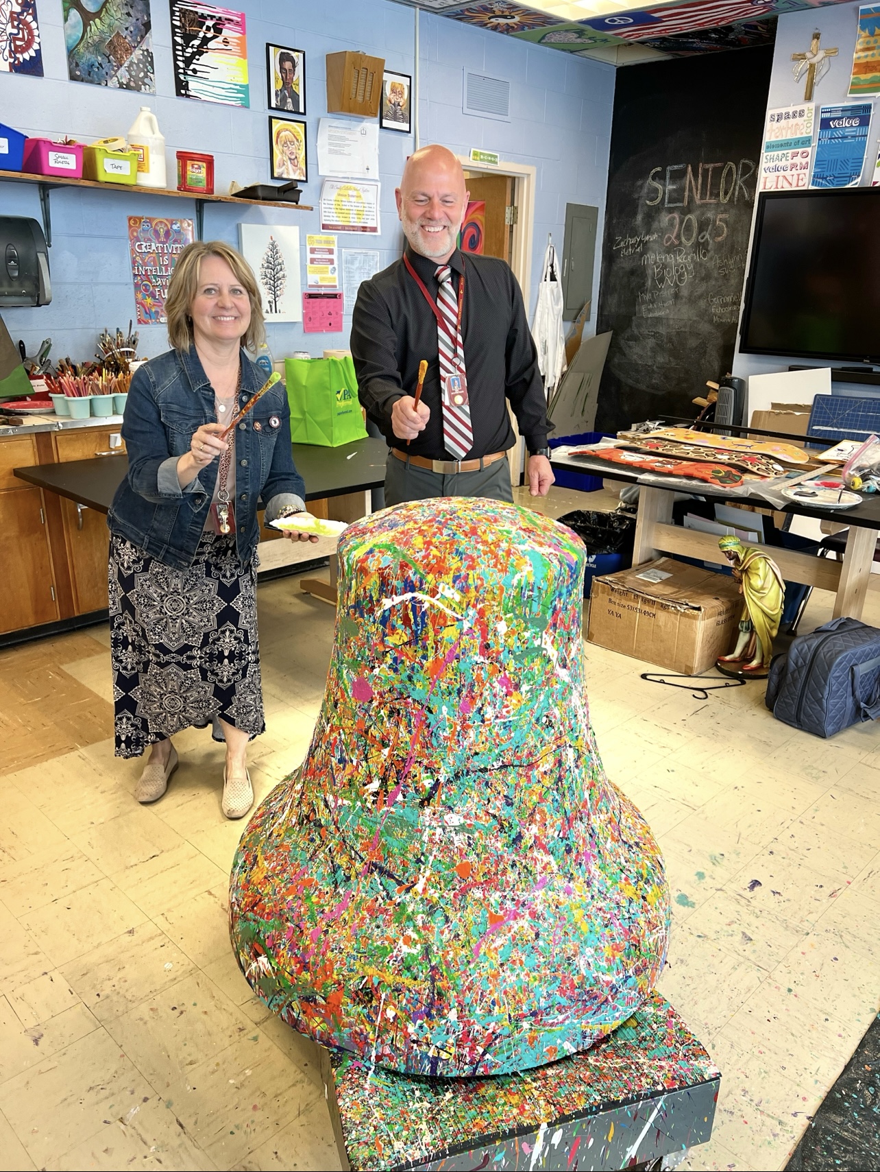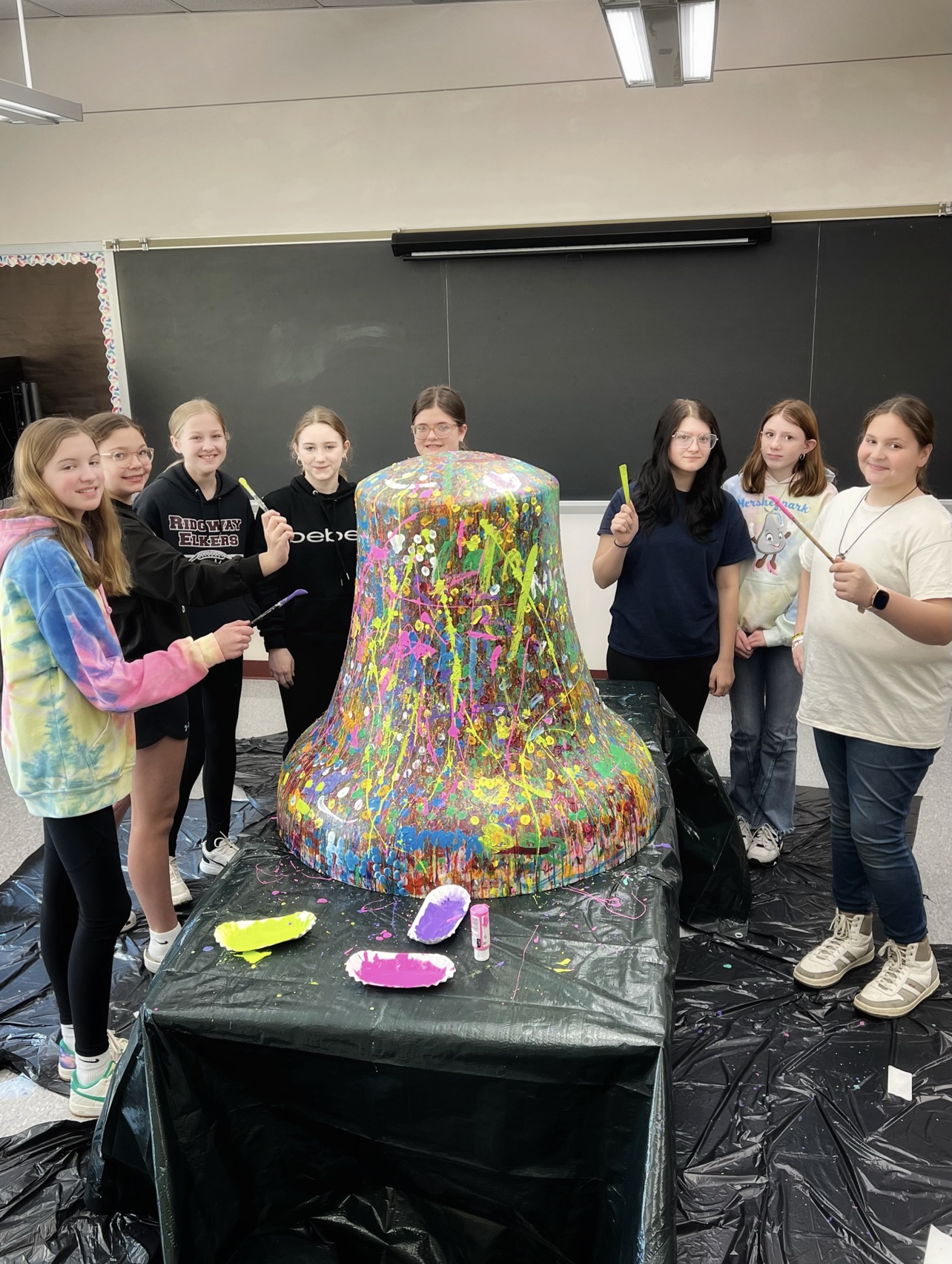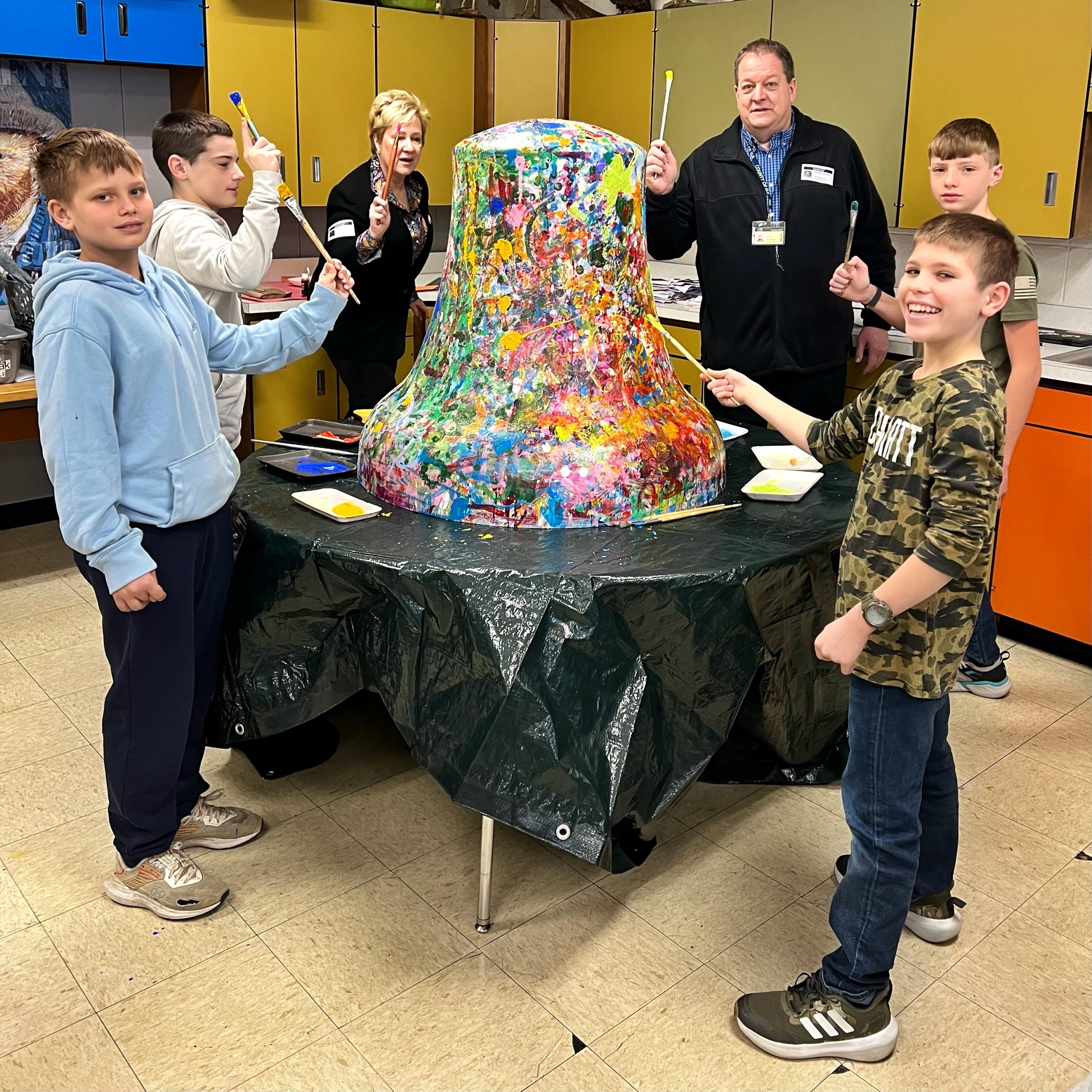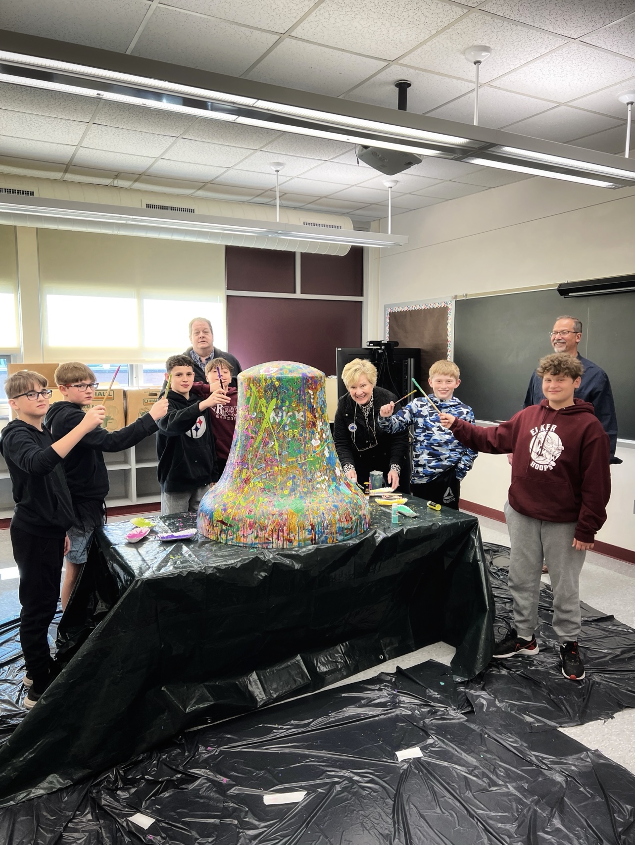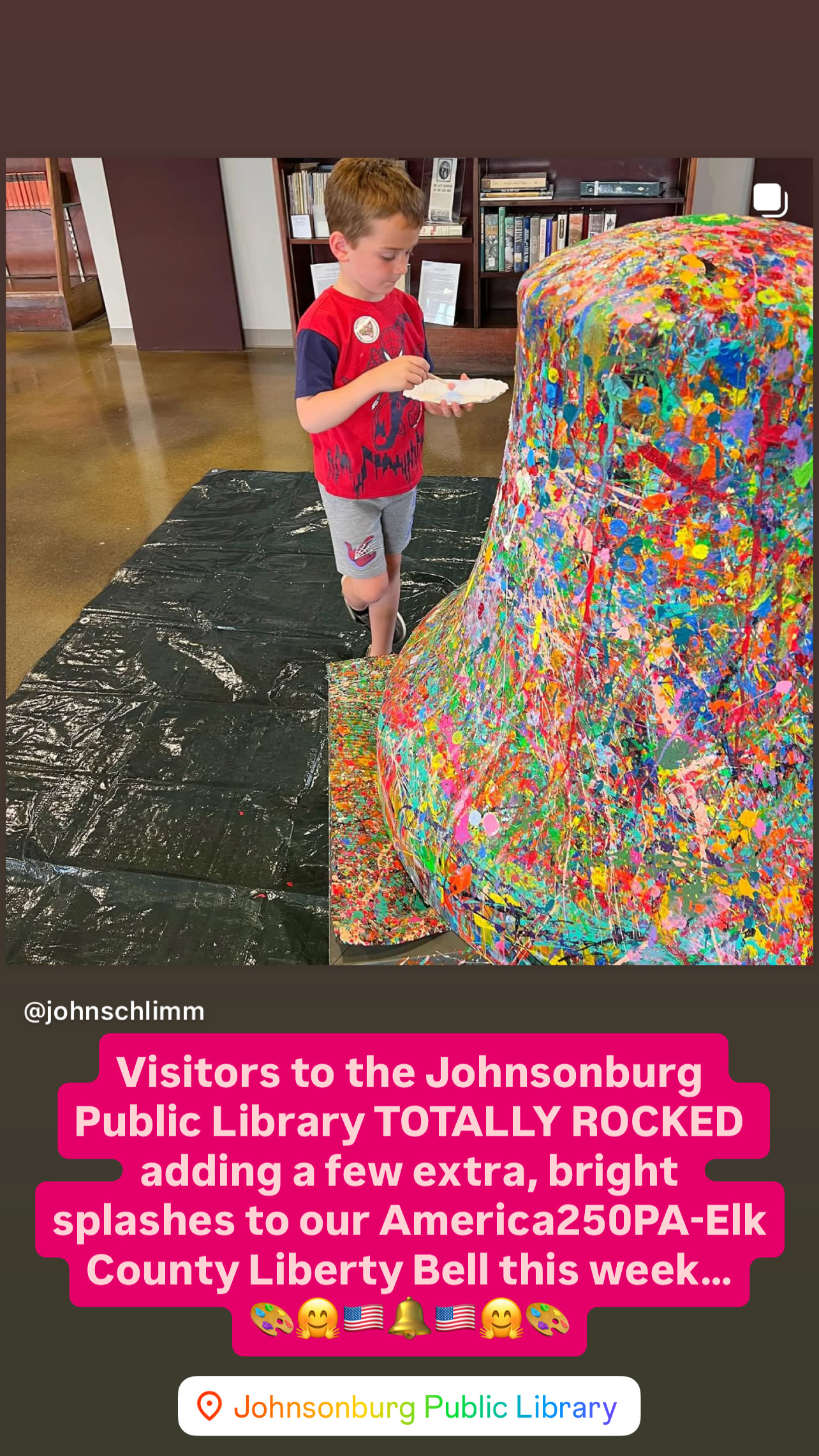 John’s vision was for the Liberty Bell, as a blank canvas, to travel to every school and public library throughout Elk County during Spring/Summer 2025 and for students and other citizens to have the opportunity to add color on the bell, creating a bright, beautiful Abstract Expressionistic masterpiece.