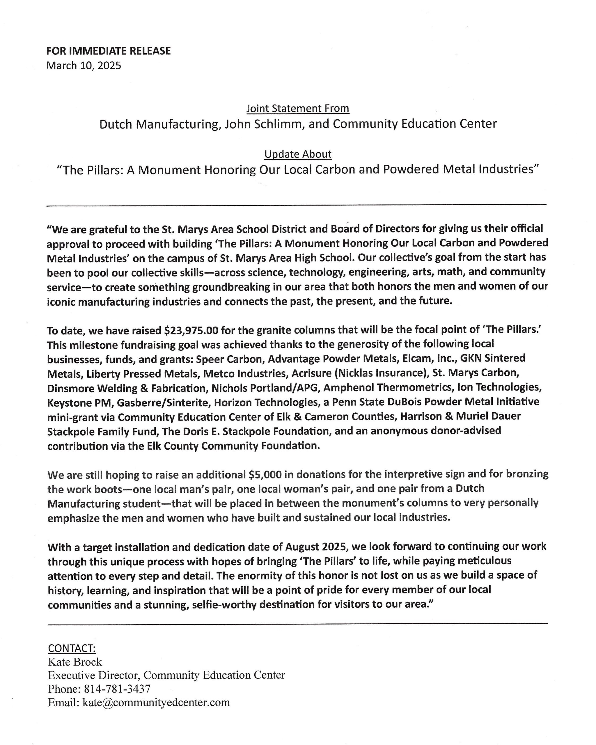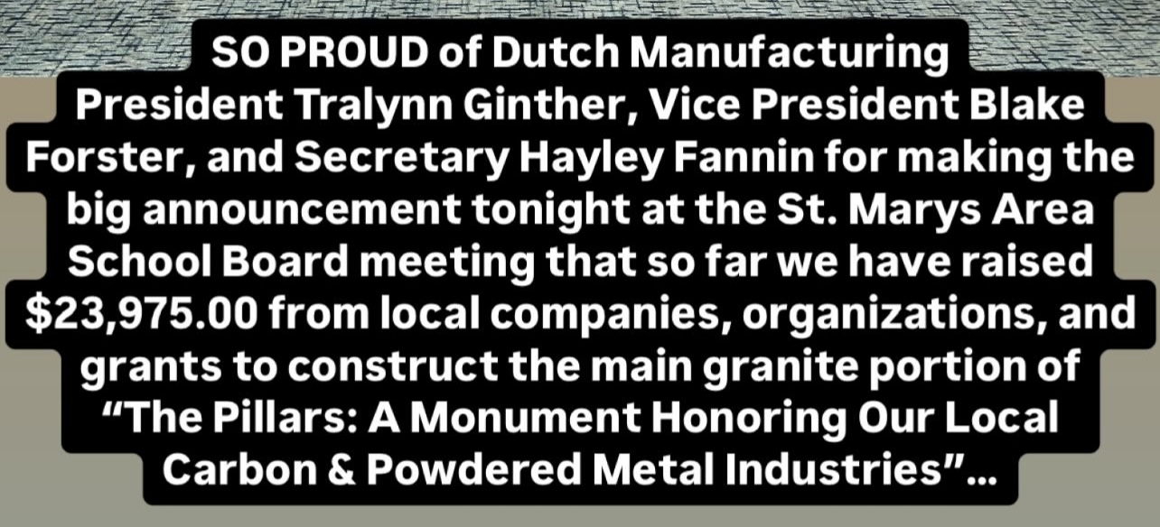 The Pillars: A Monument Honoring Our Local Carbon and Powdered Metal Industries