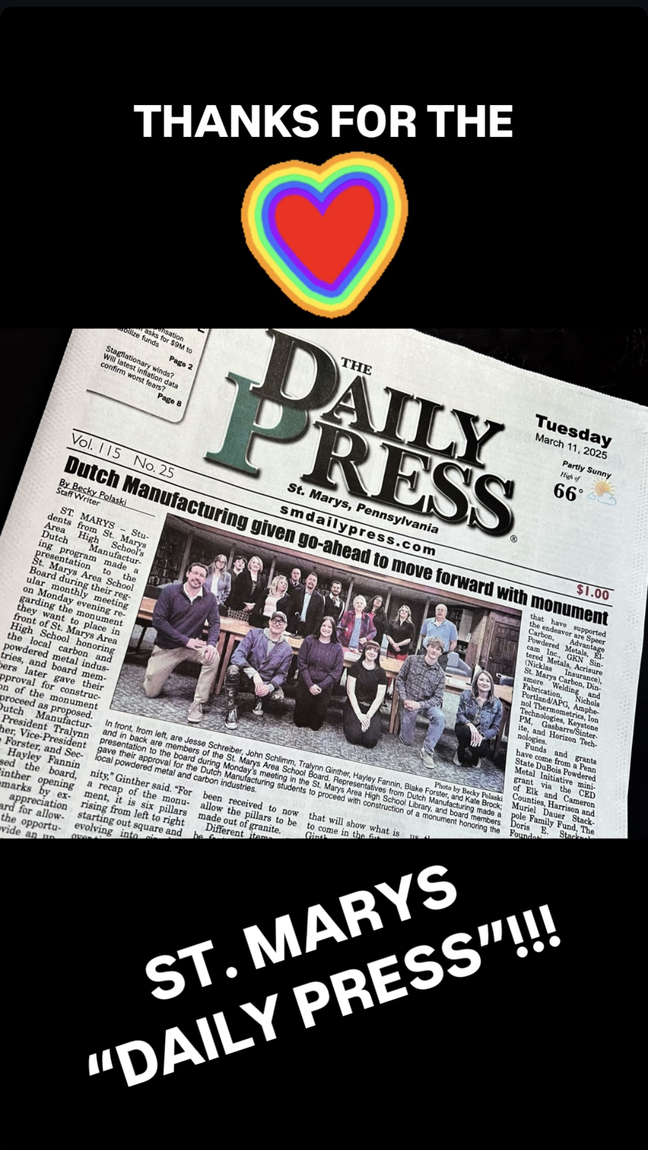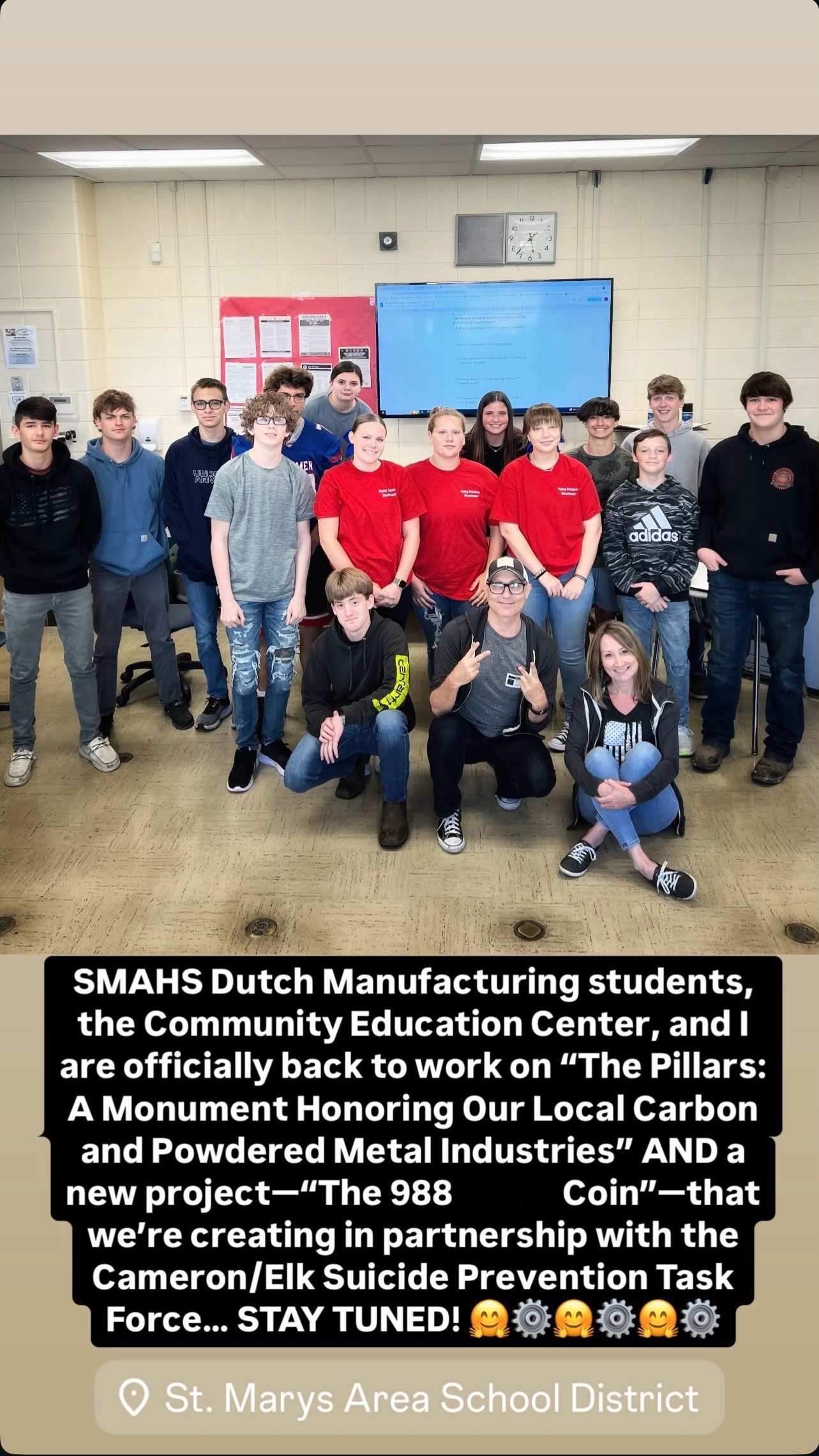 “Following 2023’s success of The Smile Coin Project—for which we designed, created, and then distributed 4,000 powdered metal Smile Coins to over 1,800 students and all staff members in the St. Marys Area School District as an unprecedented STEAM x Mental Health Awareness x Community Service initiative—we wanted to harness the enormous goodwill and public support from that endeavor to do something else really big for our local communities.